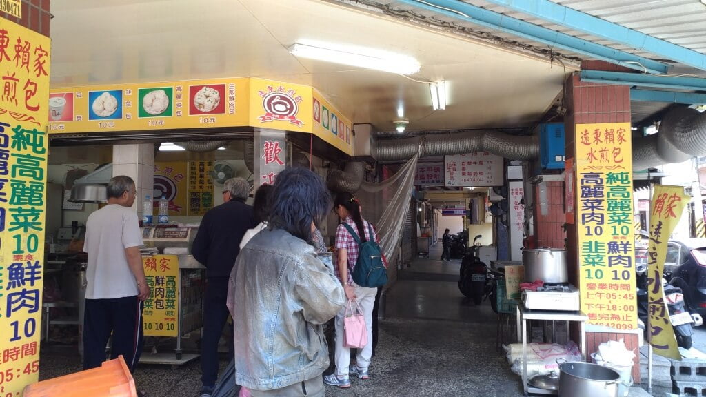 基隆美食,食記遠東賴家水煎包-小吃-點心-基隆知名排隊美食基隆老遠東戲院舊址旁邊的這家水煎包店,早從遠東戲院時就開始賣了 後來遠東戲院歇業,賴家水煎包就移到這個三角窗,一顆只要10元生意非常好,常常需要排隊,大約排個10分鐘就能買到常常來買都有好幾個人在排隊當日現做的美味一次起鍋好幾十顆,4個煎鍋沒停過加點辣椒醬很美味鮮肉包,皮薄餡味美湯汁多高麗菜肉包,皮薄餡多韭菜包,超級好吃地址: 基隆市仁愛區忠三路97號 營業時間:今日 05:30~18:00